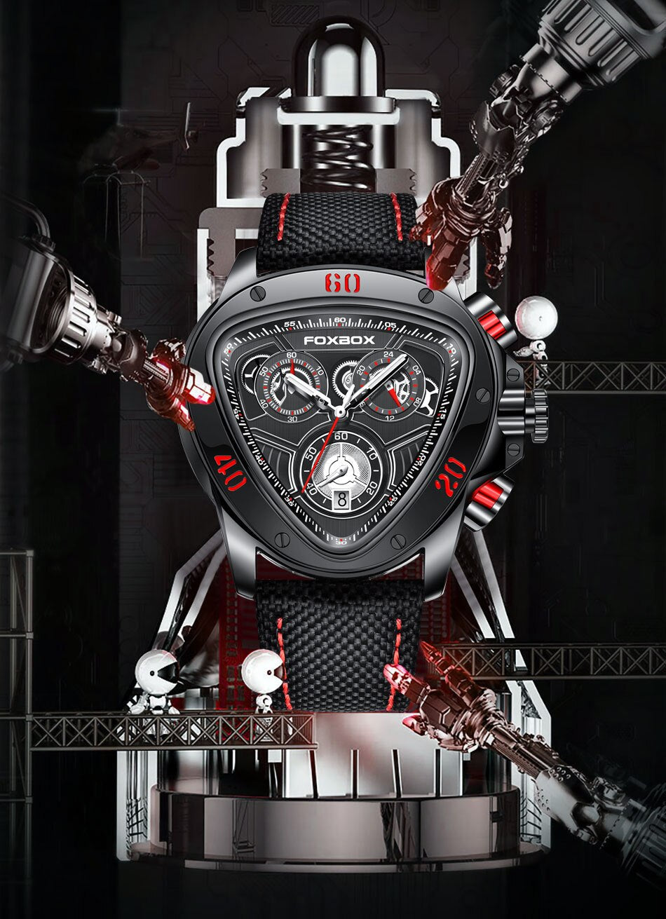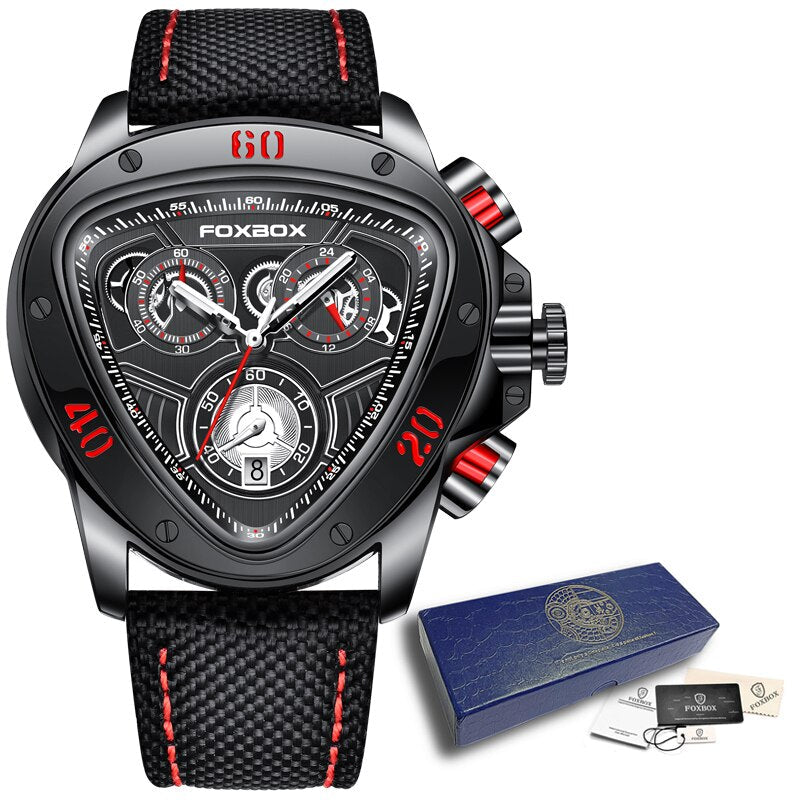 Montre Sportive à la Mode : Cadran triangulaire avec 3 sous-cadrans pour le chronomètre, l'affichage 24H et les secondes. Design unique pour vous distinguer.